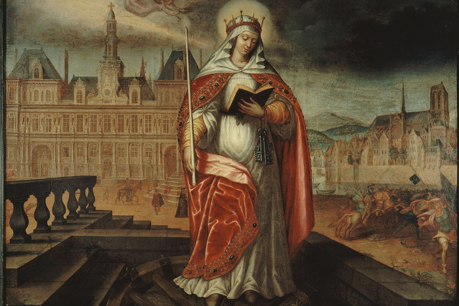 Ante la grave hambruna que azotó a la población, la santa no se quedó de brazos cruzados y encabezó una expedición de once barcas por el río Sena hasta Troyes. Durante el viaje realizó diversos milagros, como la curación de la esposa paralizada de un oficial romano y la devolución de la vista a varios ciegos. En agradecimiento, obtuvo una gran cantidad de grano que transportó de vuelta a París, encargándose personalmente de distribuirlo y cocer pan para los pobres. Falleció alrededor del año 500 y, desde entonces, es invocada por los parisinos como protectora contra las grandes calamidades como la peste y el hambre.