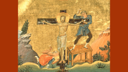 Durante las persecuciones del emperador Decio, defendió y ocultó a las comunidades cristianas de Panfilia, la actual Turquía. Se negó a sacrificar a los ídolos y se dejó descubrir en casa mientras rezaba. Fue arrestado, torturado y crucificado, mientras muchos fieles lo confortaban con la oración.